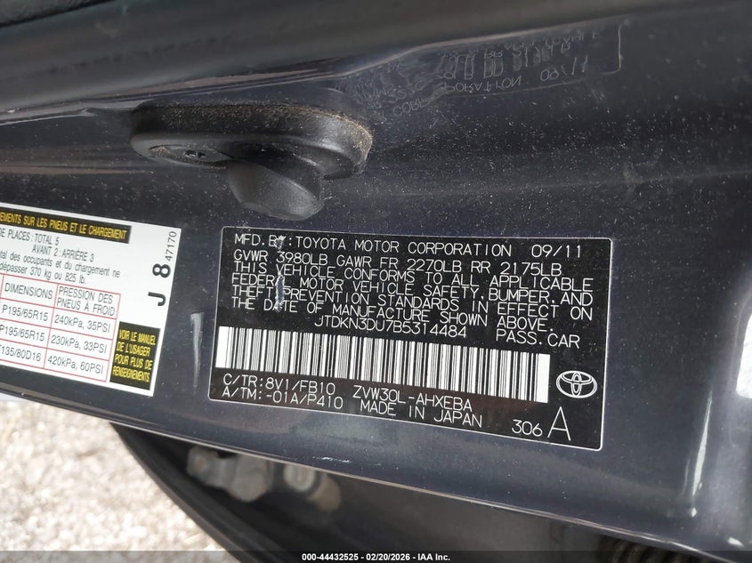 • JTDKN3DU7B5314484