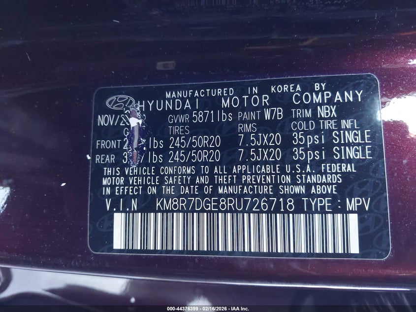 • KM8R7DGE8RU726718