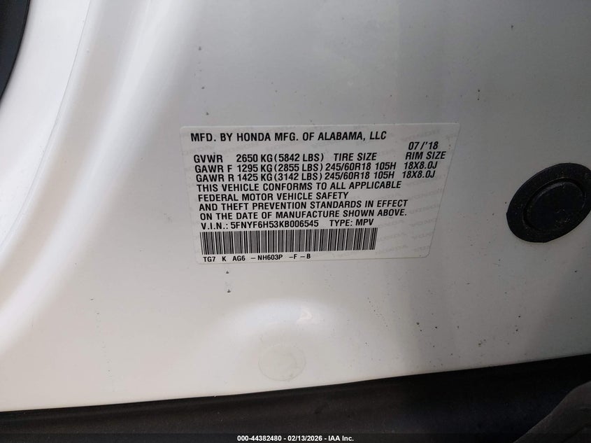• 5FNYF6H53KB006545
