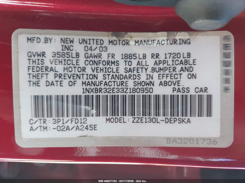 • 1NXBR32E33Z180950