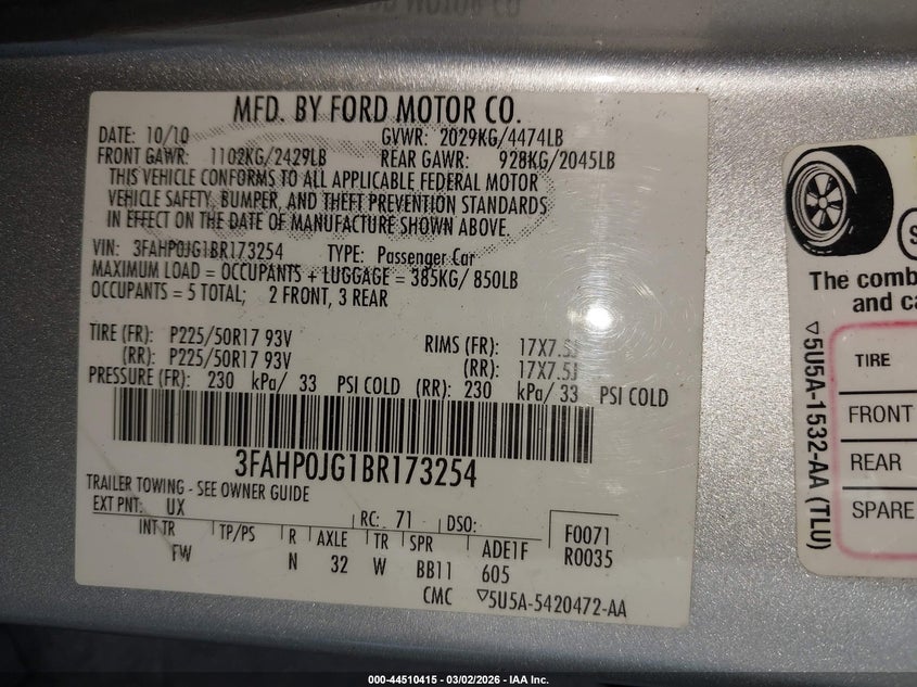 • 3FAHP0JG1BR173254