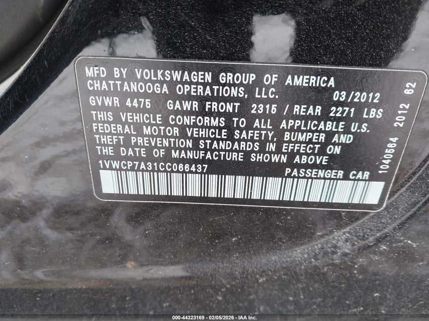 • 1VWCP7A31CC066437