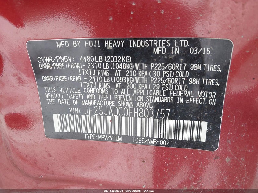 • JF2SJADC0FH803757