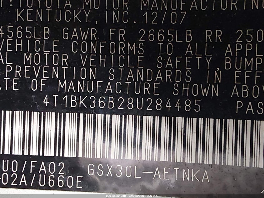 • 4T1BK36B28U284485