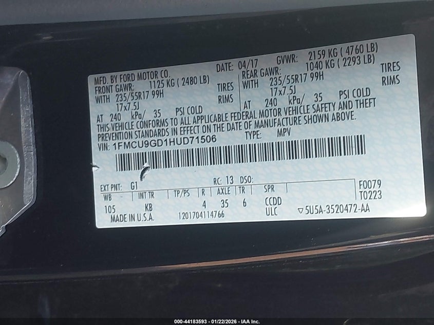 • 1FMCU9GD1HUD71506