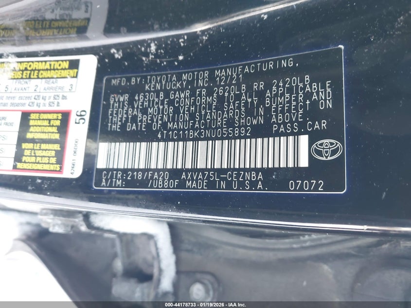 • 4T1C11BK3NU055892