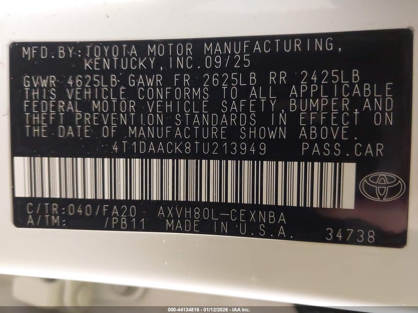 • 4T1DAACK8TU213949