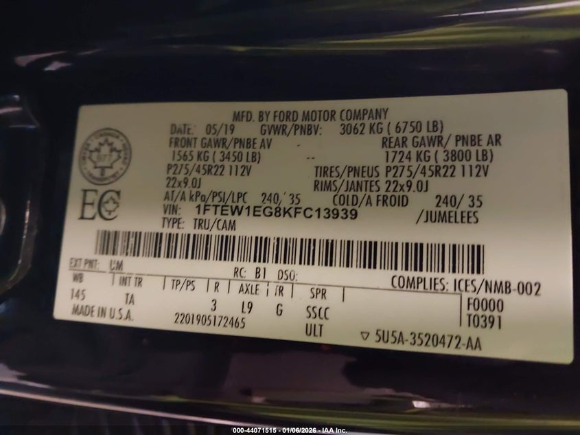 • 1FTEW1EG8KFC13939