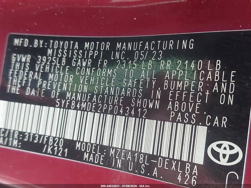 • 5YFB4MDE2PP043412