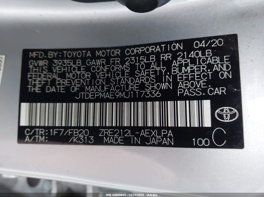 • JTDEPMAE9MJ117336