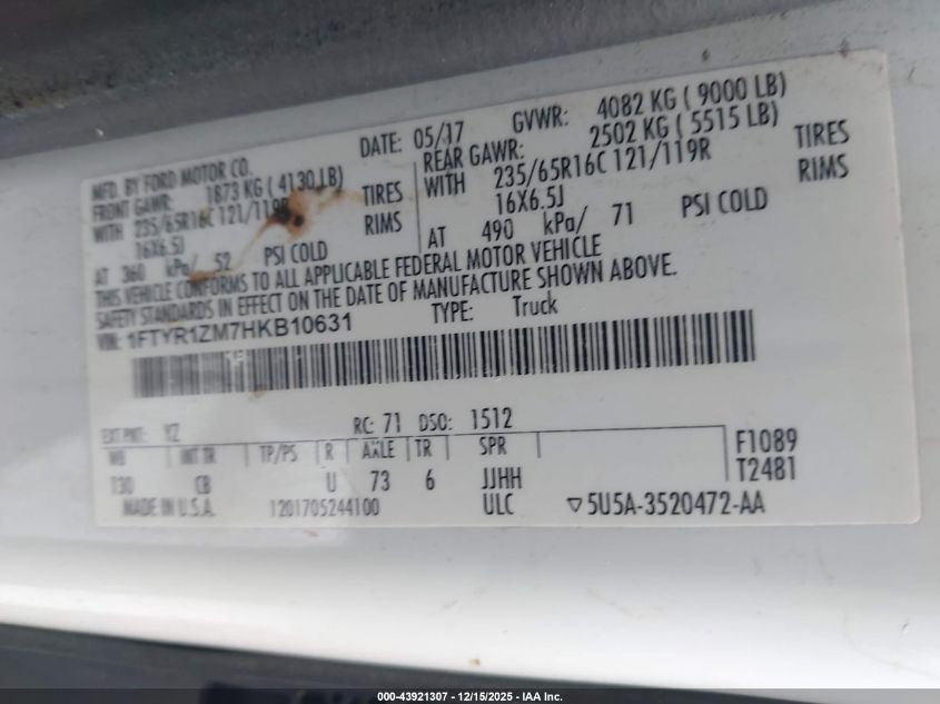 • 1FTYR1ZM7HKB10631