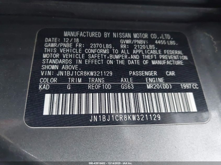 • JN1BJ1CR8KW321129