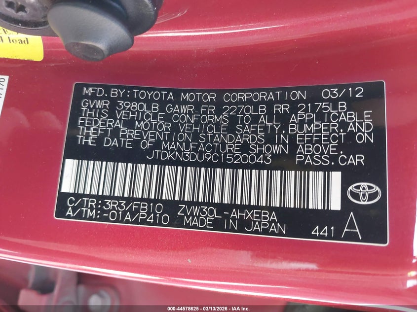 • JTDKN3DU9C1520043