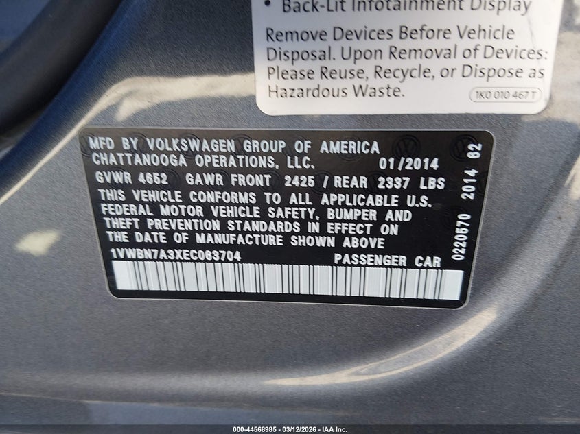 • 1VWBN7A3XEC063704