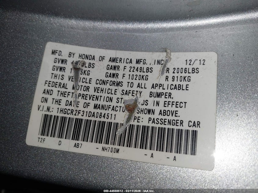 • 1HGCR2F31DA084511