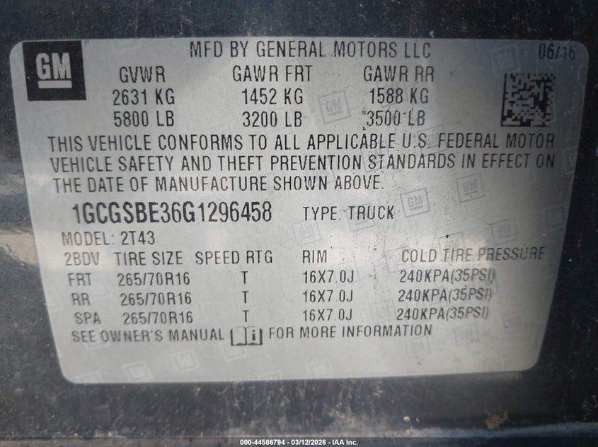• 1GCGSBE36G1296458