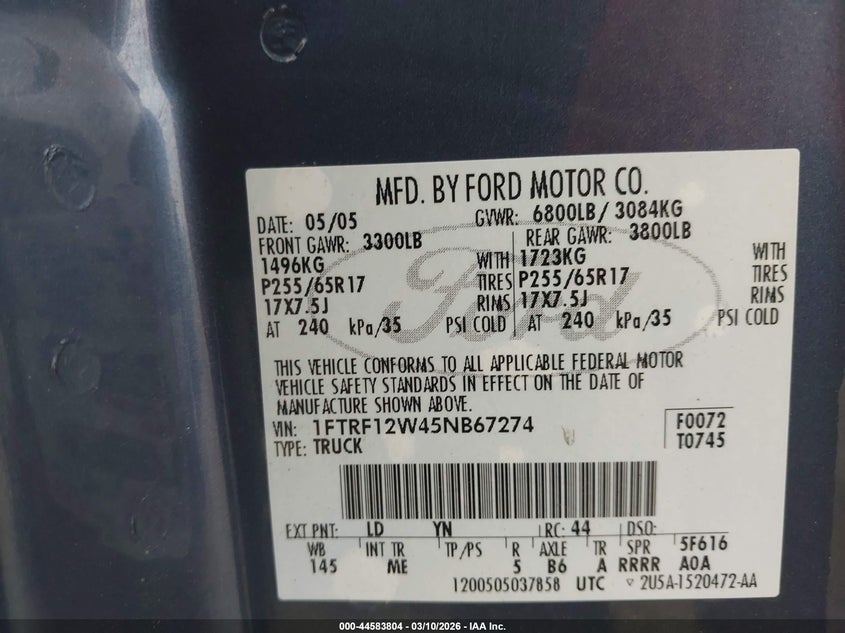 • 1FTRF12W45NB67274