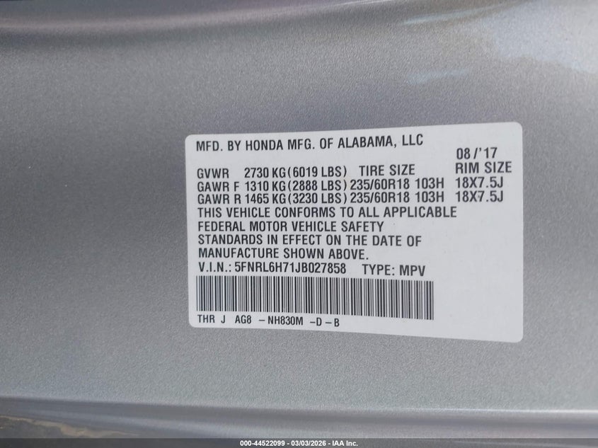 • 5FNRL6H71JB027858