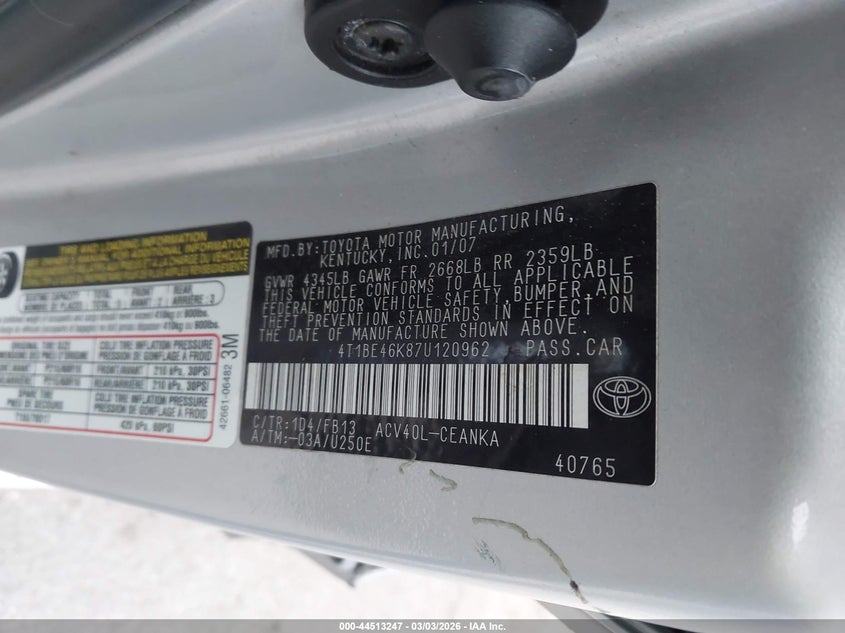• 4T1BE46K87U120962