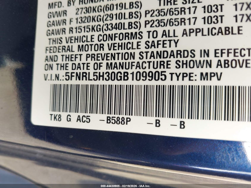 • 5FNRL5H30GB109905