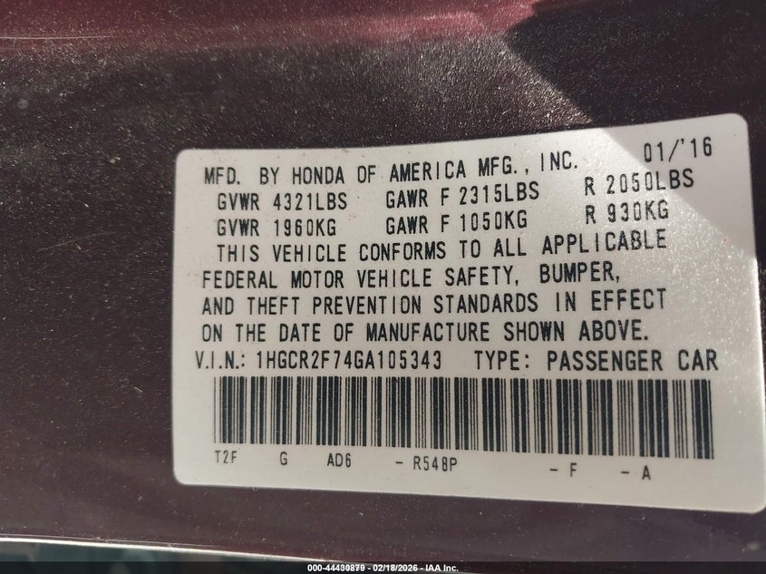 • 1HGCR2F74GA105343