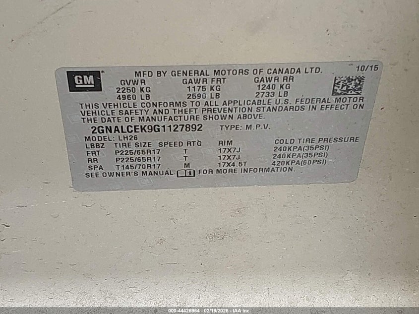 • 2GNALCEK9G1127892