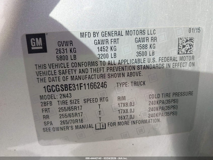 • 1GCGSBE31F1166246