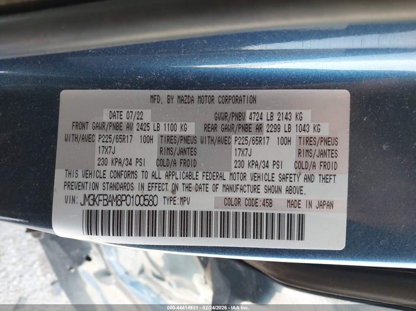 • JM3KFBAM8P0100580
