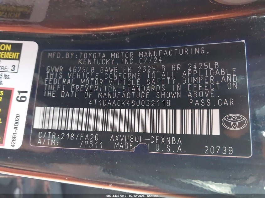 • 4T1DAACK4SU032118