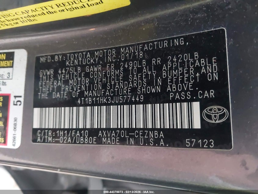 • 4T1B11HK3JU577449