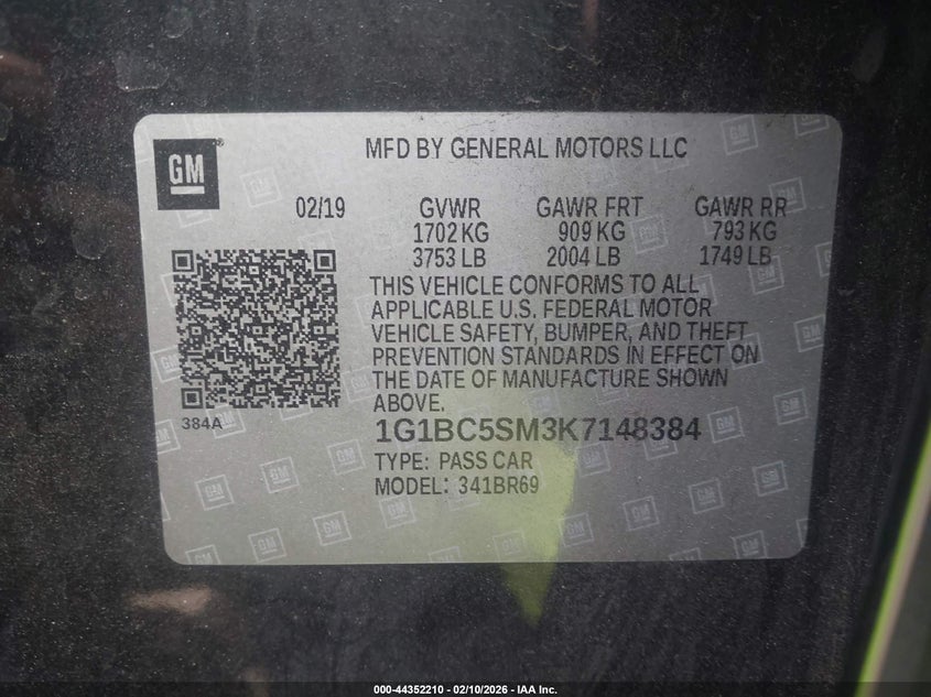 • 1G1BC5SM3K7148384