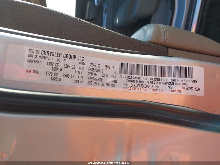 • 1C4RDJAG0DC500418