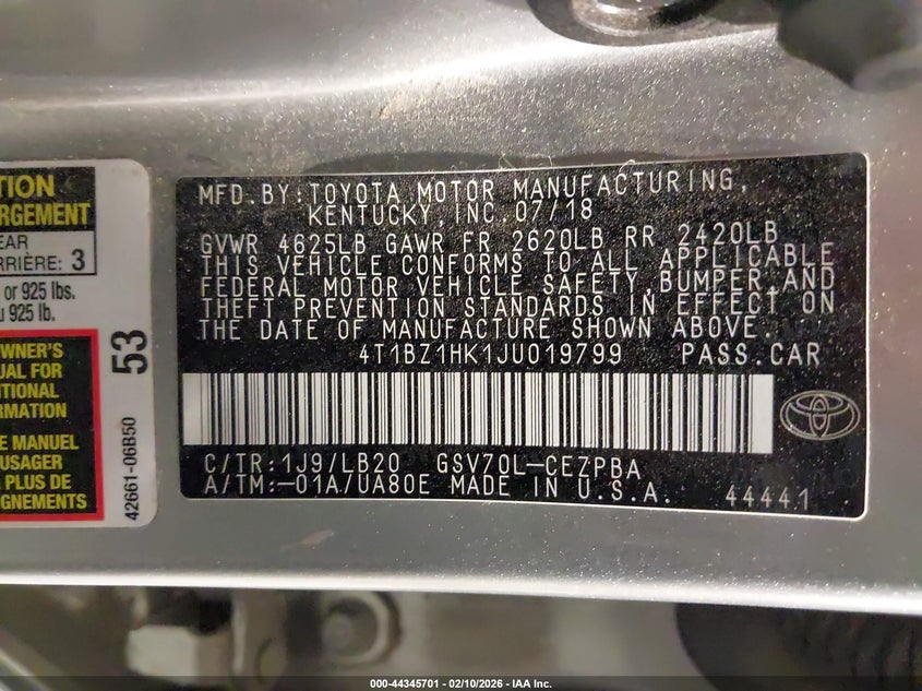• 4T1BZ1HK1JU019799