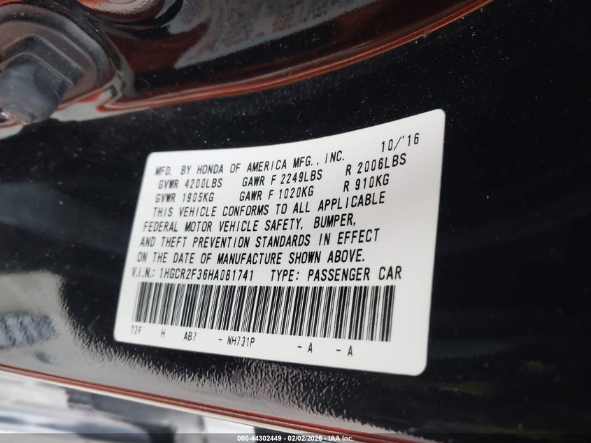 • 1HGCR2F36HA081741