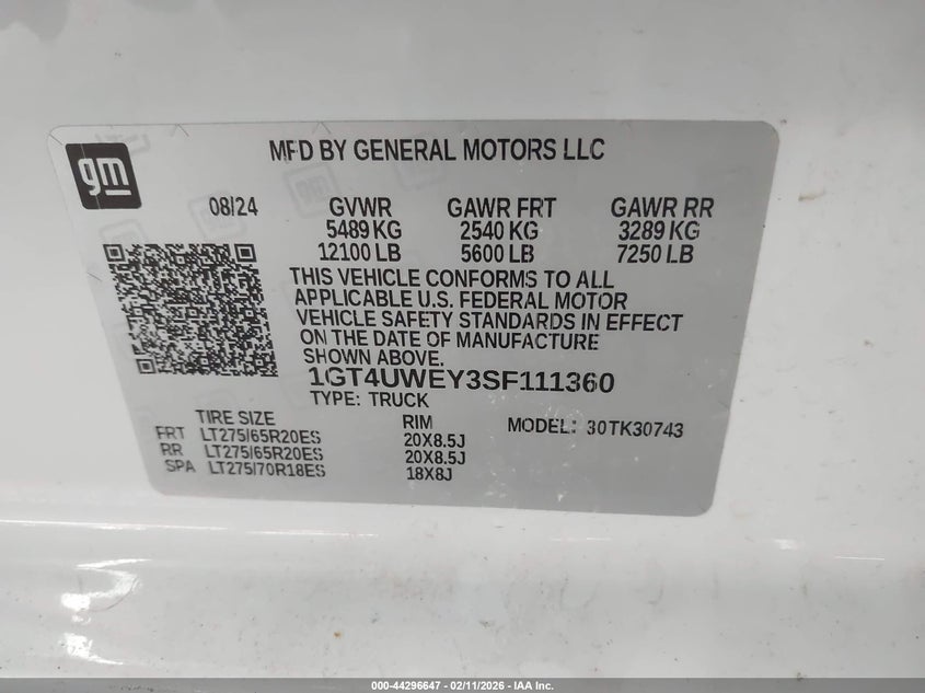 • 1GT4UWEY3SF111360