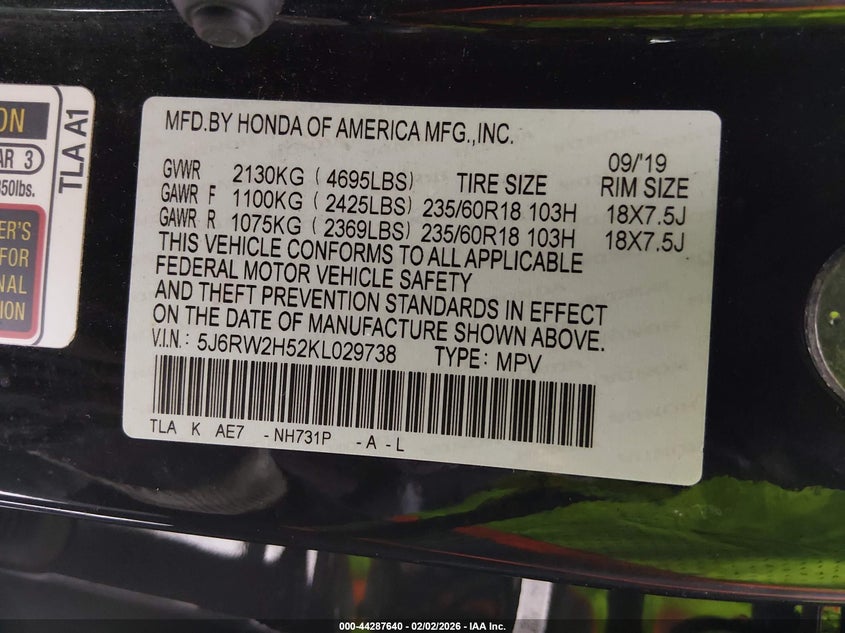 • 5J6RW2H52KL029738