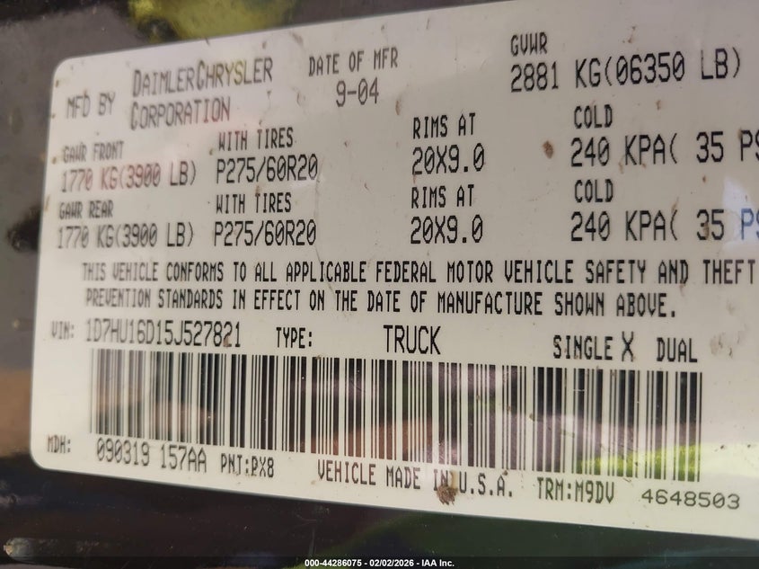 • 1D7HU16D15J527821