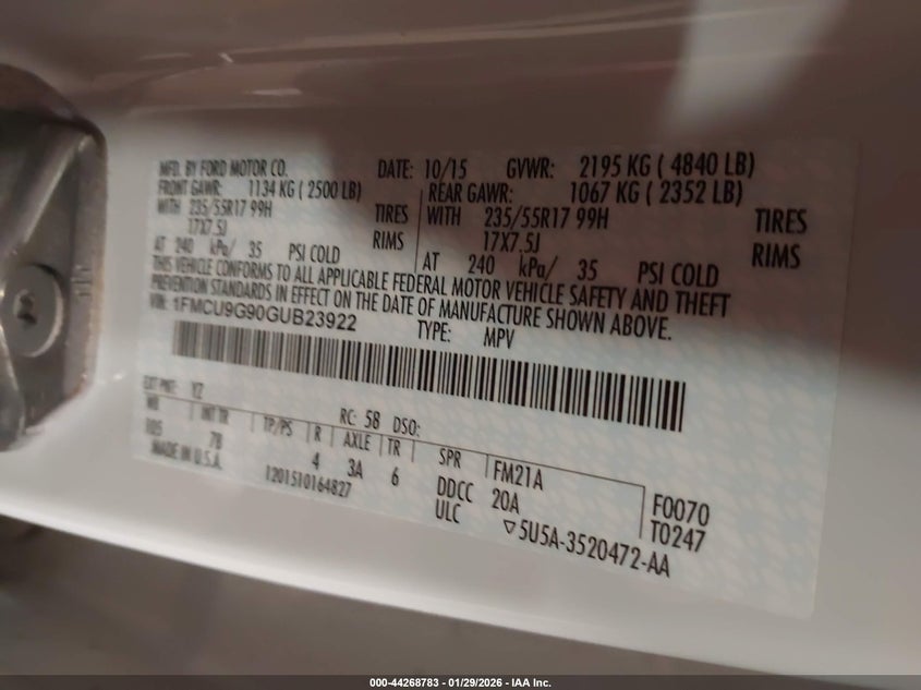 • 1FMCU9G90GUB23922