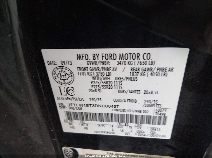 • 1FTFW1ET3DKG00457