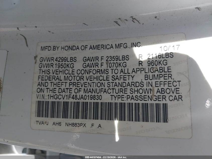 • 1HGCV1F48JA019830