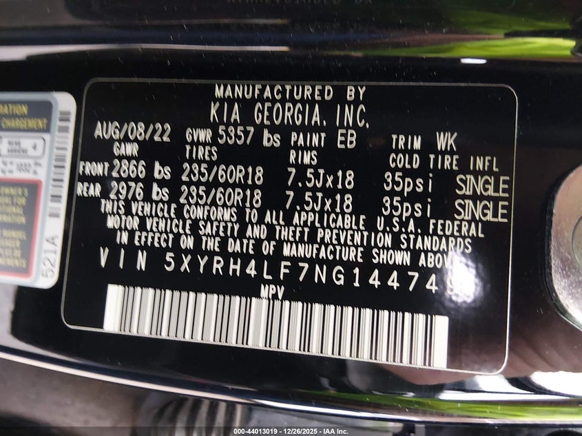 • 5XYRH4LF7NG144749