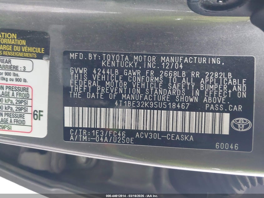 • 4T1BE32K95U518467