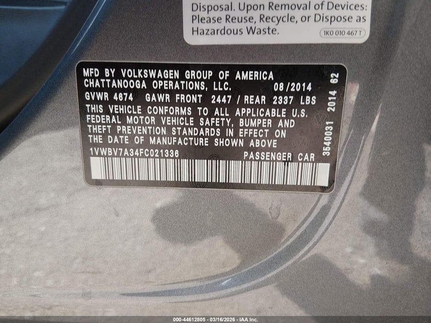 • 1VWBV7A34FC021336