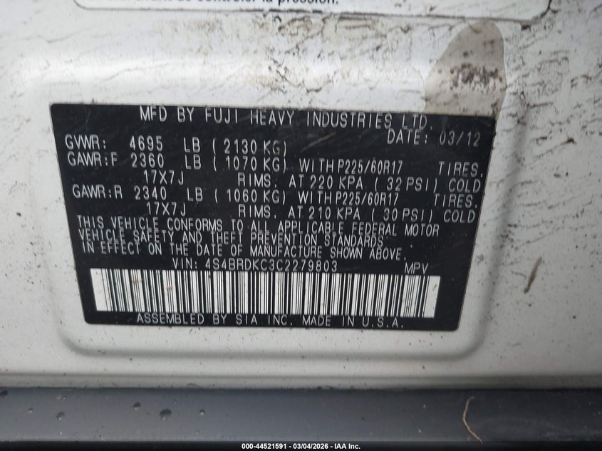 2012 SUBARU OUTBACK 3.6R LIMITED for Sale in Spokane, WA