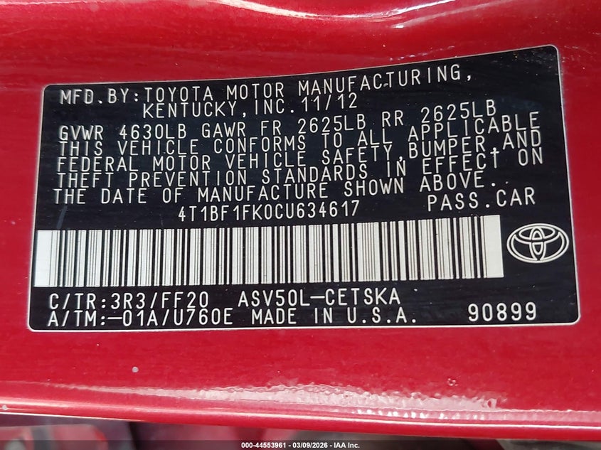 • 4T1BF1FK0CU634617