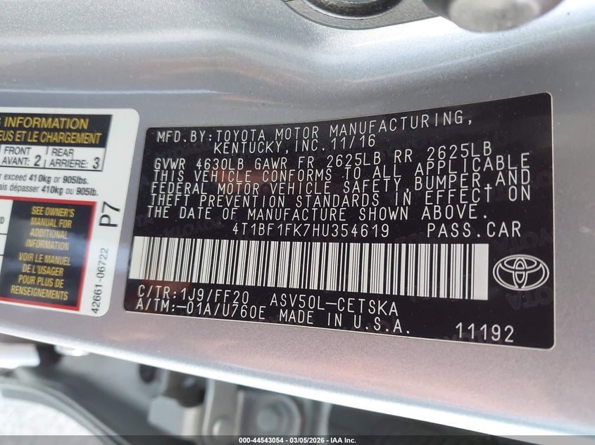 • 4T1BF1FK7HU354619