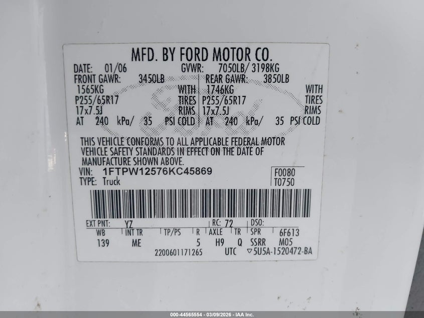 • 1FTPW12576KC45869