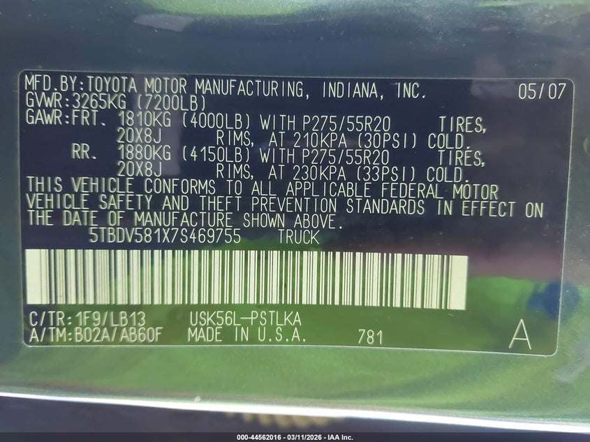 • 5TBDV581X7S469755