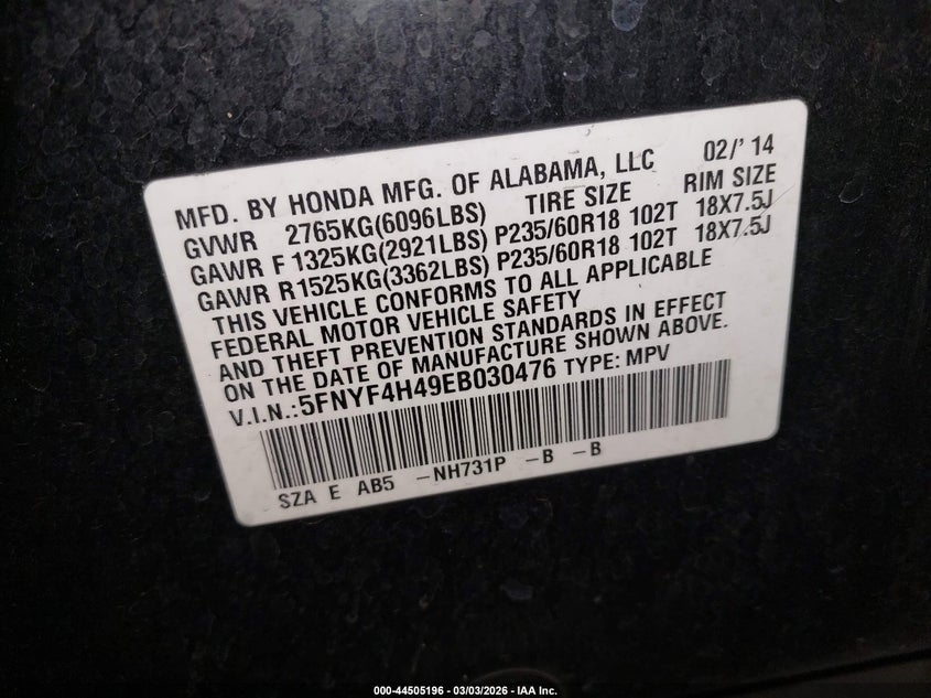 • 5FNYF4H49EB030476
