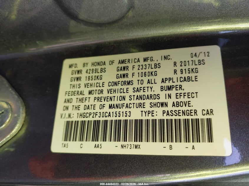 • 1HGCP2F30CA155153